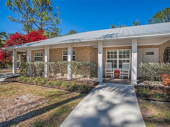 This beautiful estate is perfect for a family with extended family or friends. This completely fenced 2.58 acre property has main and guest houses, caged pool, hurricane impact windows and sliders, attached garage, metal roofs, front gate with remote control and key pad, circular driveway paved to both houses, exterior shower, gun safe. Built by Masons, both houses are concrete block and solidly built with the finest of craftsmanship. Hand-milled cabinets and tile flooring throughout both houses. Main house is solid brick exterior finish and guest house has cement board exterior finish. The guest house has private back deck overlooking the rear of property along with front and back screened patios. Stunning bougainvillea tree drapes over a pergola. Room for RV, boat, horses, and toys. Two separate sheds for storage and/or hobbies (one shed has electricity & A/C). Property has fruit trees and fire pit. Well equipment was replaced in 2017 Enjoy all the privacy and nature you desire when you purchase this beautiful estate.
