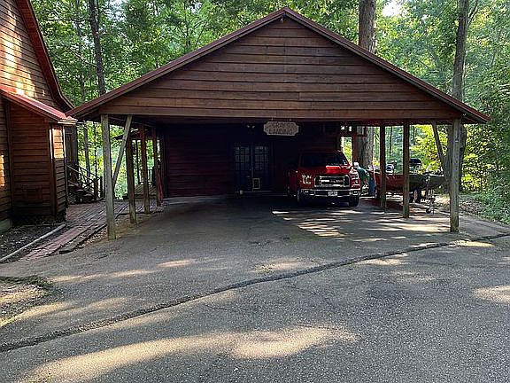 Absolutely beautiful one of a kind lake home with 250 ft of lake frontage. When you walk in the front door you feel this is a lifetime vacation home. This house is a cypress Chalet with cypress inside and out and tongue and groove pine wood ceilings throughout. Master Bedroom is 17'X 16' with sheet-rock walls and opens to an office/nursery/hobby room. Master Bath is 18'x 8' with ceramic tile no floors and includes a laundry closet with vented by-fold doors, a large Jacuzzi tub and a separate shower. A walk-in closet attaches to the Master Bath. Guest bedroom is 12'X 12' with sheet-rock walls. Guest Bath is Cypress with ceramic tile floors, and a large laboratory counter. And last but certainly not least is the HUGE Open Plan Kitchen, Dinning and Living Area perfect for your friends and family entertainment with a gas log fireplace and beautifully arranged cypress wood taking your eyes up to the pine vaulted 16 ft ceiling that covers the entire house including the upstairs 21'X 18' lofted 3rd Bedroom. Front Porch is the entire length of the house; a perfect area to sit and admire the huge oak trees. The Back Porch is screened with an office on one end overlooking the large patio and lake. This is my happy place. Tiering from the patio are stairs leading to a large deck surrounding a 22' round above ground salt-water pool. One more flight of stairs leads to the 2 Slip Boathouse on the 175 acre lake. What more can you ask for...a vacation every day! Oh! Did I mention the 37'X 27' carport with the attached 16'X 25' work-shop? This is a MUST see to appreciate house, but nothing compares to the wonderful neighbors in this small little Subdivision and all of its Great gatherings for Events as a community. Come see us...you'll be so glad you did. Serious, pre-approved inquiries; appointment only. Call 501-282-0594