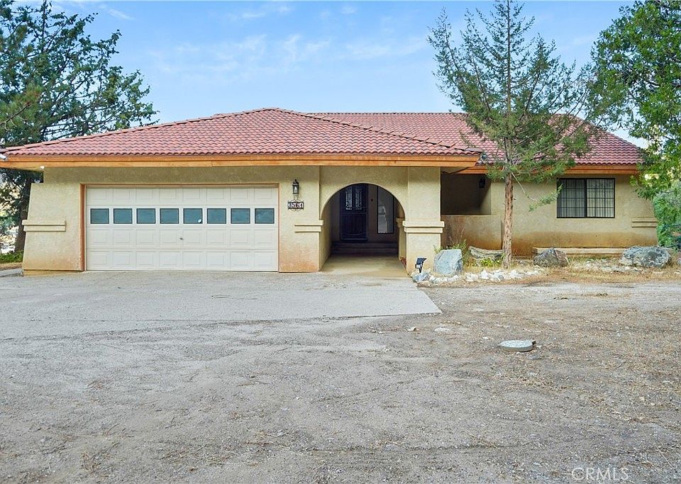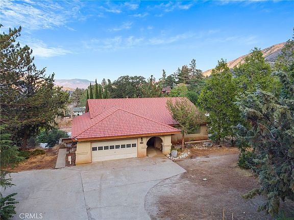 This Custom Built Spanish Style Home With Spectacular Views Sits on a 11,851 Sq. Ft. Lot! The Main Floor Living Area Is One Level--Three Bedrooms, 2 1/2 Baths, Large Light Kitchen with Newer Samsung Dishwasher, Microwave, Refrigerator, Stove, Washer & Dryer. Vaulted Ceiling Living Room with Wood Burning Fireplace and Dining Area Open Onto Wood Deck Overlooking the Town Below and Mountains Beyond! Tile Counter Tops, Updated Pull Out Shelves in Lower Cabinets, Walk-In Pantry, Dining Area and Laundry Closet--All Can Be Found In the Large Kitchen. Vaulted Ceiling Master Bedroom with Private Bath and Walk-In Closet is at the Rear of the House. Two Bedrooms are at the Front of the House, Both with Sliding Mirrored Closet Doors Supported by the Hall Bath and Additional Hall Storage Cabinet. Downstairs Basement is an Area of approx. 864 Sq. Ft. (finished without permits) with a Large Rec Room, Bedroom #4 and a Private Bath and an Outside Entrance. Attached Finished 2 Car Garage with 2 Doors Leading Into the House! This is Mountain Living at its Best!