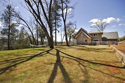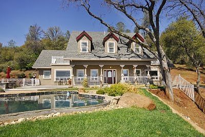 Beautiful custom home in the foothills with breath stealing views. Wide plank wood flooring and recessed ceilings welcome you to this lovely 5bd/2.5ba home. Enjoy the solid rock face fireplace in the living room. Spacious kitchen features island with gas cooktop, granite counters, stainless steel appliances, double oven, and built in desk. Downstairs master suite showcases sitting area and large master bath double sinks, soaking tub & separate shower. Bonus room and four bedrooms upstairs with 68 oz carpet and top of the line Stain Master pad. Perks include newer HVAC, owned water softener, 6kw solar with a 22kw Generac Automatic Generator, Byer's Leaf Guards, fully finished garage with cabinets and epoxy flooring, tankless water heater, & whole house fan. Step outside to a fenced area, large lawn and plenty of trees on 10 private acres. Relax on the deck as you look over the sparkling pool and spectacular views, or entertain your friends with fire pit and built in barbeque.