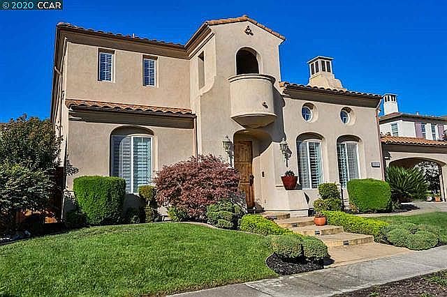 Move-in for the holidays! Impressive Bridges home backing to greenbelt. Spacious lot surrounded by many trees for privacy. TESLA SOLAR system is owned. Popular floor plan features 5 bedrooms (one on main level) plus office/library. Patio, courtyard & multiple balconies for wonderful outdoor living. Gourmet kitchen has large island and stainless steel appliances incl built-in SubZero fridge. Upgrades such as 2 fireplaces, jetted tub in master, 7 speaker home theater system, LED lights, travertine floors, shutters, central vac, HEPA air filter, dual zone heat/AC. New Pergo flooring material is avail for office & living & dining room & 1st floor bed. Possible in-law or rental unit above garage (has separate entrance & inside access to the home). 3 car tandem garage has abundant storage cabinetry. Low HOA dues include comm swimming pool & tennis. Huge park nearby for soccer, basketball, tennis & playground equipment. Highly acclaimed schools.