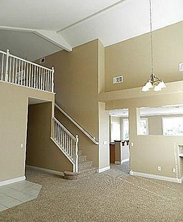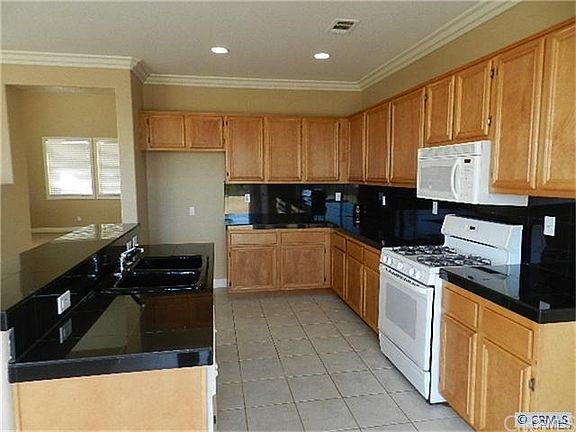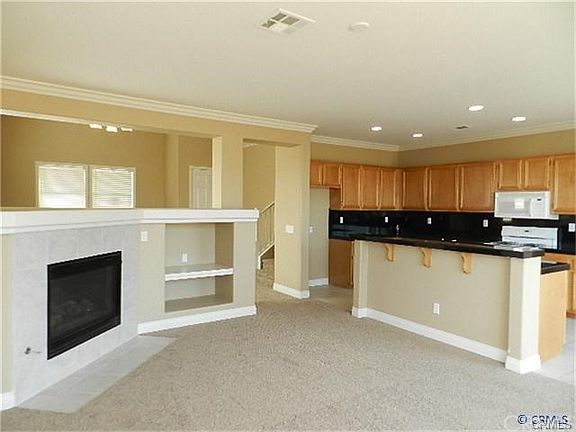 This captivating two story has an amazing floor plan which features three of the four bedrooms, including the master bedroom, DOWNSTAIRS! The fourth bedroom and one of the full baths is upstairs along with the huge loft that could be converted into a fifth bedroom and you would still have a loft! The upstairs area also features a walk in attic! The master bedroom has a sliding glass door that leads to the newly landscaped backyard. No homes directly behind the house, instead you will find an open area of beautiful greenery and trails all maintained by the association. The house features a formal dining room and a family room with a fireplace. Partial views from front and rear of the property. There is even an attached three car garage with direct access! No Mello-Roos! Low Tax Base! Low Association fee!