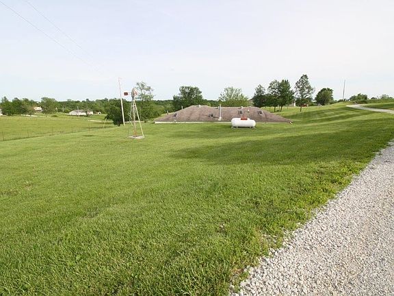 Set up for livestock. This earth contact home sits on 14.85 acres fenced & cross fenced with pond and cattle waterer an three outlbdgs. Home has a very comfortable open floor plan that has been renovated to be handicap accessible. 4 skylights, big kitchen with lots of cabinets and center island. Formal dining room, 2 car attached garage. Laundry room in kitchen. 38x58 workshop with woodstove, window 1/2 & 1/2 bath. 20x30 stock barn with some concrete. This is a nice set up. Really good grass pasture for livestock.