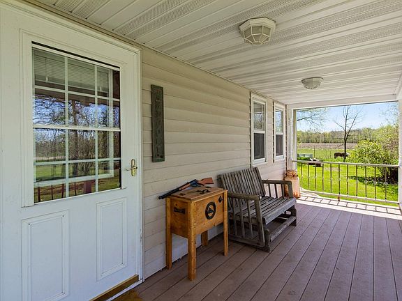 Classic 1.5 story country farmhouse on 5 beautiful acres. 3 bedrooms on the upper level. Large kitchen, dining and living room with a pellet stove. Hardwood floors, doors and cabinets. Mudroom/laundry room when you come in from the attached oversized 2 car garage. Concrete driveway/apron. Maintenace free covered front porch. Park like setting with a creek, mature trees, pasture for your horses with electric/barbed wire fencing already installed. Perfect for large gardens and as a hobby farm. The septic was updated in 2016, Furnace 2022 and A/C 2023. This is a must-see property.