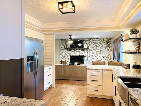 - Ceiling Fans(s), High Ceiling(s), Open Floorplan, Stone Counters, Solid Wood Cabinets, Kitchen/Family Room Combo, Cathedral Ceiling(s)