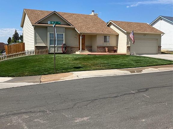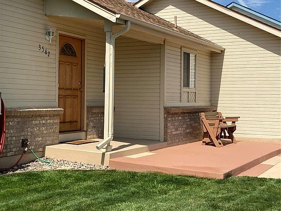 Wonderful Try-level in North Hills! This well cared for home has many features! The open level floor plan is bright with new interior paint and newer carpet. The large kitchen features tile counters and all the appliances! The stove is new. Walk upstairs to the primary suite with ensuite bath. All bedrooms have new windows! Built-ins in the closet and bath has new plumbing. Second bedroom has newer carpet, new paint. Second level full bath has new plumbing and new vinyl flooring. Downstairs find a welcoming family room with a rare wood-burning fireplace. A lower level bath has new sink/vanity and tile floor. Lower level bedroom and laundry room complete that space. The amazing heated garage features a new epoxy floor and lots of storage space. Extended concrete front patio and driveway makes this very usable space. The great location on corner makes yard space even better. The large yard has beautiful grass. The huge fully fenced backyard boasts a beautiful covered deck along with a fire pit area, custom swing set, and two storage sheds. The cord of wood for the fireplace is included! Evaporative cooler is 2 years old. Roof is 10 years old and Class 4 hail resistant shingles. Front yard manual sprinkler system and more. Don't miss this one! Easy access to shopping, recreation and highways.