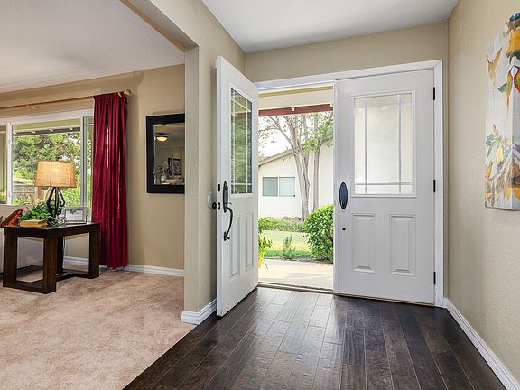 Warm inviting home on quiet private lane - Homes like this are a rare find; spacious, beautiful, 1 level, hardwood flooring, brand new carpet. Approach front door- marvel at quaintness of surrounding area, a sweet porch & garden w/ wondrous charm. Upon entry, to the right is large living room & dining room. Thru the foyer, enter to family room w/ fireplace & Anderson French Door to backyard. Next is the fantastic upgraded kitchen boasting custom finishes incl granite counters, stone backsplash and cabinets. Stainless Steel Appliances incl.Refrigerator & Thermador Gas Range. Opposite the kitchen is a bedroom used as home office. On this side of house also a full bath & inside laundry. Back to foyer, make your way down hallway to 3 huge bedrooms AND spacious Master bedroom with sliding door opening to the backyard. Gorgeous BY w/ almost ¼ acre, all sorts of blooms, fruit trees, vegetable garden, dog run & so much more. Enjoy low energy bills w/ newer dual pane windows + Owned Solar.