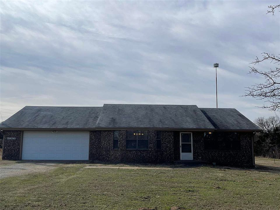 Perfect location with 2.5 acres of privacy. This brick home has open concept living, kitchen, dining area. Two bedrooms with bath between them. Washer and dryer is located in bathroom. Bath has jetted tub/shower. Barn 28x32 was built for horses. Property is fenced in back. Also, features a 3/4 bath for convenience. water well CREC electric Drumright Gas Septic system
