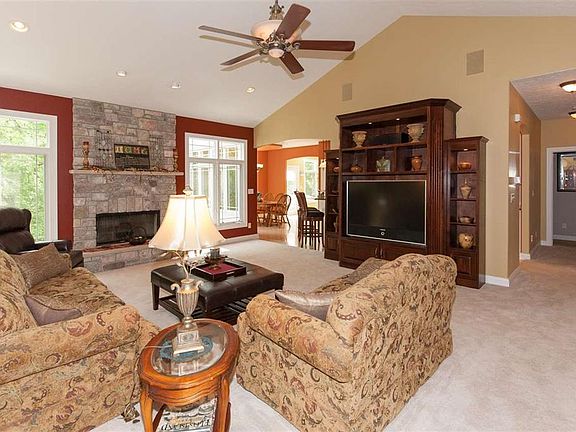 Owner Pride really shows on this custom built 3800+ Sq Ft. home. You really feel at home the moment you walk into this Ranch that boasts 9+ Ft ceilings (Cathedral/Tray) 2 fireplaces, New Carpet, Birchwood kitchen floor, Butlers area, Granite Counter tops, Central Vac, Zoned Home Surround Sound, Glass Cabinets, Rounded Corner Walls, Whirlpool Bath in the Master Bath and Professionally Landscaped. An Exercise Room in beautiful LL could be a 5th Bedroom. A small Creek/walking trail in a wooded back yard. Many more upgrades and amenities. Hot Tub, Shed, and entertainment Center are (Negotiable).