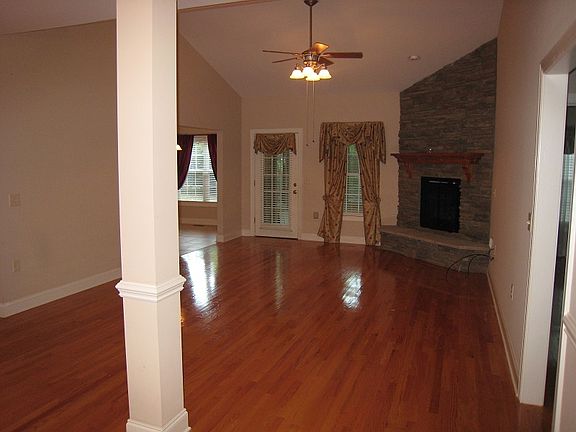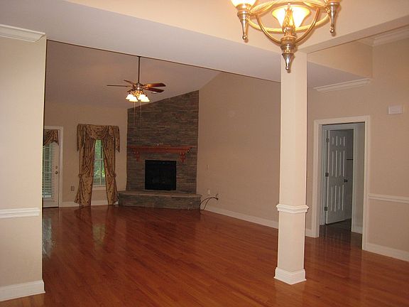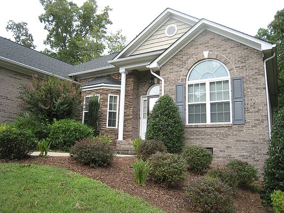 Walking up to this 2008 brick home, note the lovely brick & stone exterior. This home has extra architectural amenities such as vaulted ceilings, chair & crown moldings, interior/exterior columns, tray ceiling, pocket doors, bay window, and rock fireplace. There is no carpet in this home, only beautiful hardwood floors and tile. MBR has recessed lighting & Master bath has double sinks and a jetted tub with glass block window for lots of natural light. Kitchen boasts lovely cherry cabinets, pantry with pull-out drawers & all SS appliances remain. 10 x 13 sunroom overlooking the private backyard provides a wonderful space for reading or relaxing. Laundry room with sink, cabinets & large closet. Garage interior has steps that provide easy access to attic with extra storage. Don't miss this great opportunity to make this house your home!