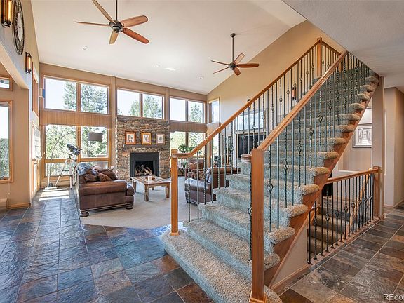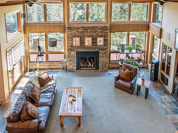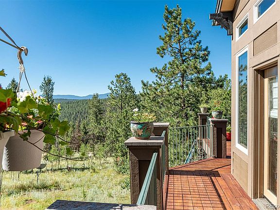 Come explore this sprawling mountain retreat minutes away from Staunton State Park. This frame/stone contemporary sits on 4.3 private acres with stunning views of the Kenosha mountains and features your own greenhouse. You'll be wowed at first sight! You'll feel the warm, mountain vibe as you enter through the leaded-glass entry with Honduran mahogany front door - one of many custom artisan features! Slate flooring carries you through to the Great Room featuring soaring, vaulted ceilings, 10’ stacked stone fireplace, and a south-facing wall of windows - delivering spectacular panoramic views and tons of natural light. All perfect for enjoying time gathering with friends and family! The layout of the home will exceed your expectations in this work from home world. With two ample and comfortable offices, a workout room and 4 spacious bedrooms. The first-floor primary suite is awash in natural light and includes an inviting bay for relaxing and soaking in the peaceful mountains as well as two walk-in closets. The primary bath features a luxurious soaking tub, custom hand / bath towel hardware and ample storage. After a day’s hiking / biking, head out to the 940 sf deck with impressive views of Lionshead and Cathedral Rocks and an incredible view of the milky way at night. The walkout, newly finished basement, delivers 9’ ceilings, custom sliding doors with a historic past (refurbished from a Capitol Hill hotel) and plenty of space for entertaining and enjoying all mountain living has to offer! **Lot includes a second parcel and can be subdivided** Seller is offering a 10K closing concession towards insurance.