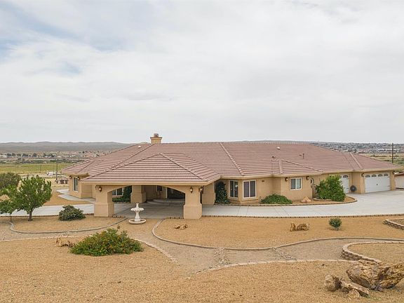 Peaceful Country Living. Situated on a hill over looking the Mojave River, the City of Barstow, and the MCLB, it has one of the best 180 degree views of the area day or night, it also has easy access to Interstate 15 and Los Angeles or Las Vegas as well as Fort Irwin. This four bedroom, four bath custom home boasts 3474 square feet of livable space in addition to a four car garage, two car portico, RV Parking, and large covered patio perfect for entertaining on a corner lot. Every aspect of this home was built with quality in mind. From the granite counter tops and crown molding to the mosaic and granite inlaid tile floors. Wonderful, open feel throughout the kitchen, living room and dining area. Large kitchen is equipped with breakfast bar, island cook top, vegetable sink, dishwasher, trash compactor, and an ample pantry with room for a freezer and direct access to the garage. Additional features: Nine foot ceilings with eight foot doors; a fireplace in the Living Room; over sized bedrooms with walk-in closets and a Jack and Jill bathroom; Guest bedroom with private bath, walk-in closet and separate entrance; Master suite with jacuzzi tub, steam shower, fireplace, and huge walk-in closet; Audio sound system in all rooms;Ceiling fans is most rooms; Workshop; Pull thru driveway; Fire pit; and a water softener. If you are looking for the perfect place to raise your family, entertain friends, or just relax, look no further....This is the Place!