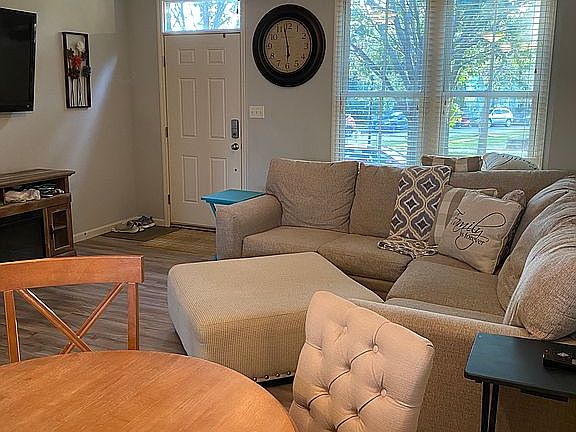 2 bed 2.5 bath rowhouse. One car garage. Triangle park common ground across the street and an easy walk to the pool. Updated flooring and appliances. Furnace and roof replaced less than two years ago. Unfinished basement with rough in.