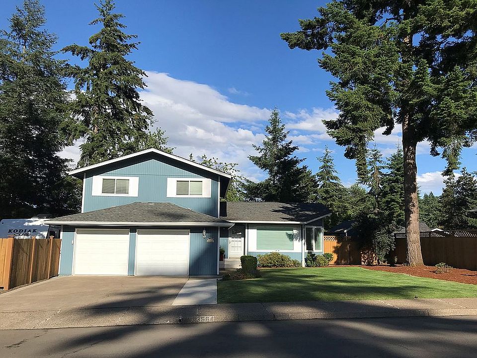 ACCEPTED OFFER, with contingencies. Beautiful and spacious family home in desirable South Salem neighborhood! Vaulted ceilings and an open floor plan create ample space throughout the kitchen, dining, and living areas. The main level also features a single bedroom, half bath, laundry room, and a bonus play room with built-in monkey bars and climbing wall. Retreat to the large master bedroom with walk-in double closets and bathroom, located upstairs along with 2 additional bedrooms and a bathroom. This over-sized, flat lot includes fenced-in R.V./boat parking, a large backyard, and an inviting deck & garden. Perfectly situated for families, just one block from Nelson Park and across the street from the bus stop for excellent schools.