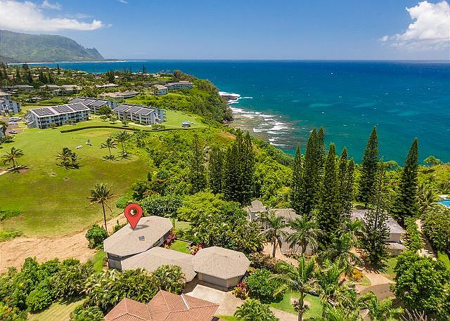 Luxury ocean- and mountain-view residence in a quiet ocean-bluff setting in Princeville. This 4-bedroom plus office with full bath, 4.5-bath home offers excellent flexibility as a primary residence or vacation-rental investment opportunity.