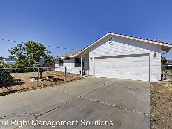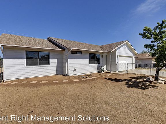 Home for rent with attached 2 car garage and detached 2 car garage. - Please do Not disturb current occupant. Thank you! This 1,132 square foot Prescott Valley home features a open living room, dining room and kitchen floor plan with tile floors. The kitchen offers a breakfast bar, gas range and brand new refrigerator. The master bedroom has an attached three quarter bath. There are 2 guest rooms and a full guest bath. There is brand new carpet and paint throughout the whole house and a 2 car attached garage. The exterior features mature bushes in the front, offering privacy, a large fully fenced back yard, back covered patio and bonus 2 car detached garage! HOA: None. Heating: Forced gas. Cooling: Central AC and ceiling fans. Appliances include: refrigerator, gas range/oven, dishwasher, disposal and laundry hookups units are not included (dryer can be gas/electric). Utilities: Tenant Pays. Electric - APS. Natural Gas - Unisource. Water, Sewer - Town of Prescott Valley Trash. Terms: No smoking. Pet policy: Dogs or cats negotiable. (3 max.). No dangerous breeds or dogs with a bite history. College students welcome. Renters insurance required. Year lease. Move In Costs: $35 application fee (per person 18 and over). $165 carpet cleaning fee $100 administrative fee Deposit is equivalent to 1.5 times one month's rent. Rent and/or prorated rent. Call Rent Right today at 928-771-0308 to schedule a showing. Information is deemed to be reliable, but is not guaranteed. (RLNE3298924)