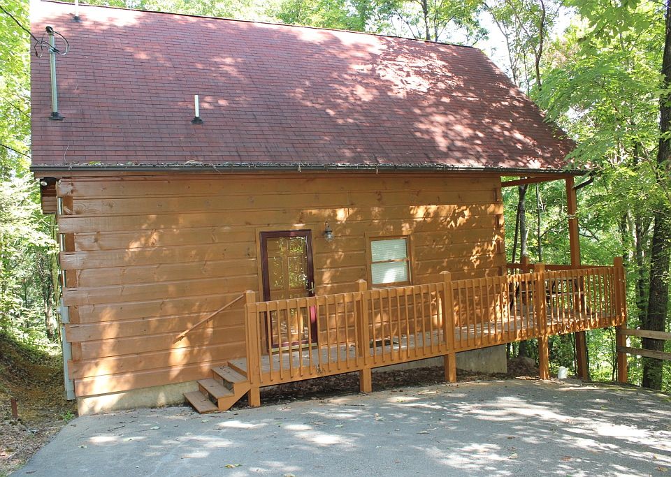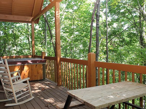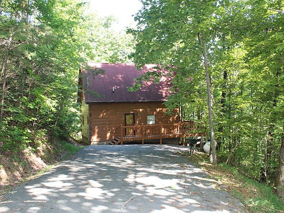 Private two bedroom/two bath cabin only 7 minutes from the Parkway in Pigeon Forge. Convenient to Dollywood, golfing, dining and the Great Smoky Mountains National Park. Located in in a small gated community of 11 cabins. Large living room with a gas fireplace, cathedral ceilings and wood floors. Romantic loft bedroom with whirlpool tub. Main floor bedroom currently used as a game room. Large deck with hot tub and peaceful wooded views. Sold furnished. One year home warranty is included and financing available. Fresh exterior stain summer of 2016!