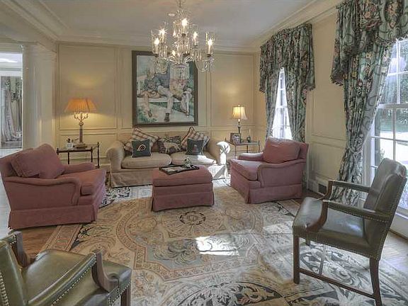 Wonderful family home on one of Atlanta's prettiest streets. The main level has a two-story entrance hall, master wing with his and her baths and closets, a kitchen with a breakfast area which opens to the family room, a banquet sized dining room, a gracious formal living room, a cozy study and two offices. 5 bedrooms and 4 baths are upstairs. The terrace level is finished. The garage, located off the circular driveway, parks 5 cars. There is a play yard for children, a pool and spa, and a lighted tennis court.