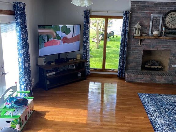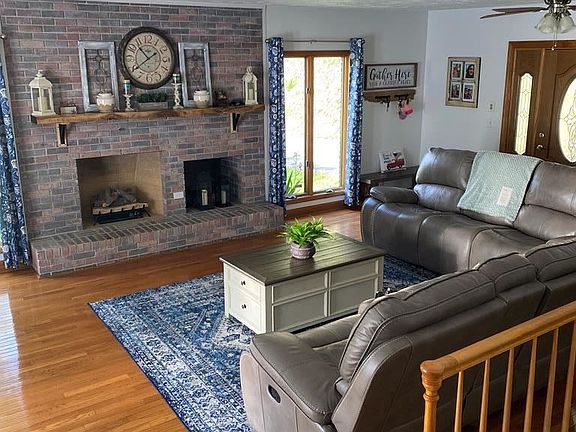 Beautiful, immaculate house & property, & very well maintained. Totally move-in ready! Large great/family room w/gas log fireplace; spacious kitchen w/Corian countertops & stainless steel appliances, & all appliances convey. Large dining room; three bedrooms & 2 baths; gleaming hardwood & tile floors complete the main level. Basement features family room w/electric fireplace; laundry room w/half bath & laundry tub; bedroom, as well as workshop & playroom. Lots of shelves & lots of storage! A new 35'x24' garage building with benches, & two other storage buildings are on the property. New porch & floating deck on front of house. A circular paved driveway with lots of flowering bushes & shrubs, & house & yard are totally fenced. There's even a playground, complete with swing set & trampoline, for the littles! Perfect place for children! It's a beautiful house, & must be seen to appreciate! Call to schedule your showing! Beautiful house in pristine condition!