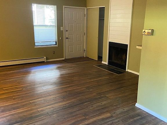 Ground floor condo, hardwood floors, patio, W/D in unit, carport space, prefer no pets, cat negotiable, access to community outdoor pool, will be getting new paint. Fireplace not for use.