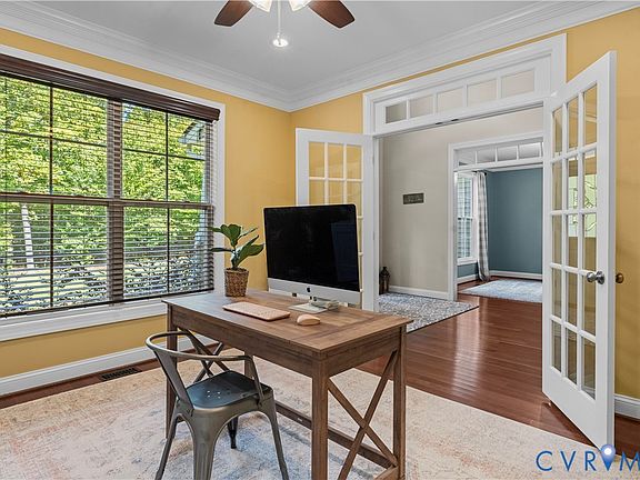 Welcome to Aston ~ A Beautifully situated home nestled on a private 5-acre lot in central Powhatan, and home offers an ideal layout for multi-generational living. The first floor features a welcoming 2 story foyer that opens to a formal dining room, front office, and leads to the spacious great room and light-filled sunroom, that flows seamlessly into the chef’s kitchen. The kitchen includes a large center island, ample cabinetry, granite countertops, and stainless-steel appliances—perfect for family gatherings and entertaining. A first-floor bedroom and full bath provide a convenient guest or in-law suite option. A screened porch off the main living area offers a quiet place to unwind and enjoy the peaceful setting.Upstairs, the grand primary suite features tray ceilings, a charming bay window sitting area, and a luxurious ensuite bath with his and hers vanities, soaking tub, and separate shower. Three additional bedrooms, a full bath, and a spacious bonus room complete the second floor. The finished third floor offers a large flex space with a walk-in closet and additional storage room, ideal for an office, hobby area, or playroom.The full basement provides an additional living area with a kitchenette, bedroom, and full bath—perfect for guests, extended family, or recreational use. The basement also includes a mechanical/utility room with a second laundry area and opens to a covered patio overlooking the private backyard. The outdoor space offers plenty of room for entertaining and is perfectly suited for a future pool or garden expansion.Car enthusiasts will appreciate both the attached 2½-car garage and detached 2½-car garage with upstairs storage. The property is thoughtfully landscaped with multiple fruit trees and garden areas, providing a serene and private setting surrounded by nature.Conveniently located just minutes from the Historic Powhatan Courthouse area for local dining and shopping, and with easy access to major interstates for commuting, this home combines tranquility, privacy, and versatility.