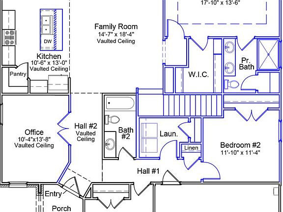 This is an all-brick one-level home with a fourth bedroom and third full bath on the upper level. There is an open floorplan, gas stove and double oven doors.