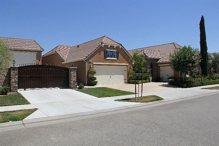 Shop Enthusiasts!!! Located in Harlan Ranch, the Central Valley's most innovative master-planned community. This stunning, former Foxton Chase model home, is one of a kind. It is one of the original Wathen Castanos Hybrid Homes that was built with the latest technology in energy efficiency. (Low E windows, 100% fluorescent lighting, tankless water heater, 20 SEER HVAC with smart thermostat) Boasting a courtyard entry, formal dining, guest wing, 4 Bedrooms, 3 Baths, flex space, distressed wood floors, custom cabinetry, over-sized lot with approx 1700 sq ft shop. 16' ceiling, 14' doors, pull thru access and plumbed for solar, 40'x40' concrete pad behind an electric gate.