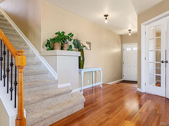 Beautifully updated home features 4 bedrooms upstairs plus a loft, main floor study and a finished basement! Excitement builds as you pull into the cul-de-sac, notice the impeccable curb appeal and a welcoming front porch where you can sit and enjoy a beverage. Once inside you'll be delighted by the easy living layout with over 3000 square feet above grade. Wide plank flooring extends from the office with French doors through the dining room and into the bright and open kitchen. Abundant cabinet and countertop space for all of your culinary needs and stainless steel appliances that include gas range, dishwasher and refrigerator. Breakfast nook is ideal for daily meals and looks into the charming living room with stacked stone around the gas fireplace. Access the expansive Trex deck with some mountain views and imagine relaxing with family and friends on summer evenings. Cobblestone walkway leads you to the patio where firepit conversations take place. Back inside you will find the main floor powder bath and smartly designed mud room. Note the wrought iron at the stairs as you ascend to the loft that can be purposed for your specific needs and a cozy craft room. Generous primary bedroom offers two walk-in closets and a recently remodeled spa like bath. Invigorate your day in the large shower with floor to ceiling tile or unwind in the luxurious soaking tub. Secondary bedrooms utilize the full hall bath with new tile floors and Quart countertops. You will be ready to entertain in the finished basement with soapstone countertop at the wet bar and fun pub seating. You can't beat the convenience of having a gym in your home and the squat rack stays! Basement is complete with the fifth bedroom that hosts a spacious walk-in closet and the 3/4 bath nearby, perfect for family or guests! Other features include new water heater, newer fence that has been sealed, concrete tile roof, mini fridge at wet bar stays. The Meadows is a pool community near shopping, restaurants, I25!