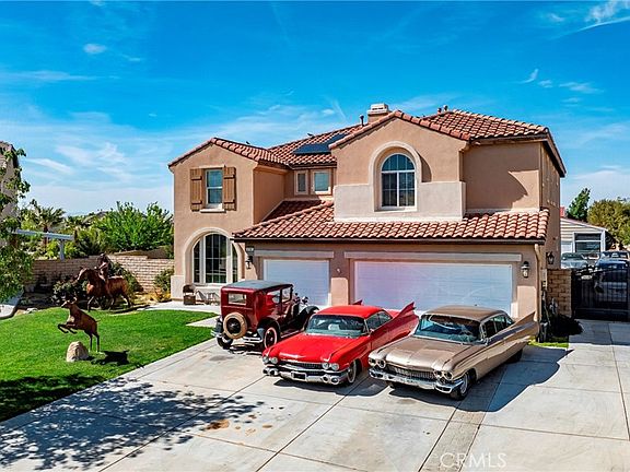 Welcome to your dream home, a spacious five-bedroom, five-bathroom sanctuary on over half an acre of beautifully landscaped grounds. Fully fenced with elegant block wall fencing, this property offers privacy and an ideal retreat for families and entertainers alike. Step inside to discover a warm atmosphere highlighted by custom stonework around the cozy fireplace in the family room. The formal dining room features a classic Craford ceiling and stunning stained glass window, perfect for memorable gatherings. The chef's kitchen is a culinary paradise, boasting an expansive granite island with an eat-up bar, gas cooktop, electric oven, wine refrigerator, and instant hot water tap. Exquisite cabinetry with crown molding adds sophistication. Ascend the grand staircase to find an open loft area with built-in shelving and a cozy sitting nook. The thoughtfully designed layout includes a convenient downstairs bedroom, a full bath, and a half bath, ideal for guests or multi-generational living. The upstairs master suite is a true oasis, complete with a private fireplace and sitting area for relaxation. The luxurious master spa bath offers a soaking tub for indulgent self-care. Two additional bedrooms, a loft, and an office complete the upper level. This home features 52 solar panels for optimum power generation, making it an eco-friendly choice. It is also designed for accessibility, with an optional stair chairlift that can be removed if not required. Outdoor living includes an automatic RV gate for side entry, an attached four-car garage, and two detached garages—one 70' x 26' with 16-foot ceilings and another 60' x 24' with 12-foot ceilings, perfect for storage or hobbies. Relax by the koi pond with a soothing fountain or enjoy the serene small orchard with apple, pear, peach, and plum trees, along with grapevines. Customization and upgrades throughout showcase quality craftsmanship in this exceptional property. Discover the perfect blend of luxury, comfort, and tranquility in this remarkable home.
