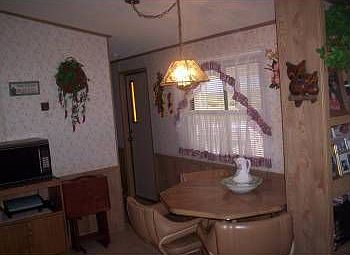 Nicely maintained and in excellent condition! 2BR, 2BA, 16 ft. wide singlewide on 1.02 acres on pavement. The home features a split floor plan, roomy kitchen, casual dining open to livingroom. Spacious master bedroom, dble sinks and walk in shower in master bath. Livingroom has new carpet. Detached garage has 3rd bathroom, work benches, security door and windows. Front and rear covered patios, awning and solar screens to keep utility costs down, concrete sidewalks, mature trees and desert landscaping.