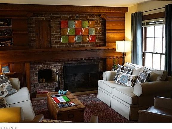 A fairytale cottage come to life in Shaker Heights! A brick driveway leads to a 2-car attached garage of this brick and Shaker home. A cozy study greets you as you enter, featuring hardwood floors, built-ins and a box window. Wood floors continue into the living room, where a wood beamed ceiling and a large wood burning fireplace can be found. The dining room connects to the living area, where more original built-ins and quaint character continue. Off the dining area, a large sun room with slate floors and walls of windows is perfect for seasonal gatherings. The kitchen features knotty pine cabinets, updated stainless appliances and exposed brick. Two bedrooms are located on the first floor, both with hardwood floors. A full bathroom is also located on the lower level, with an eclectic drawer vanity. Upstairs, two bedrooms feature newer carpet and their own private bathrooms, which have been adorably updated. A finished rec room in the water-proofed basement features Berber carpet and built-in shelves. The large backyard is also story-book worthy, featuring tasteful landscaping, stone accents, arbor and fire pit. This home has also been updated with a new furnace and A/C unit. An incredibly charming home at an incredible price!