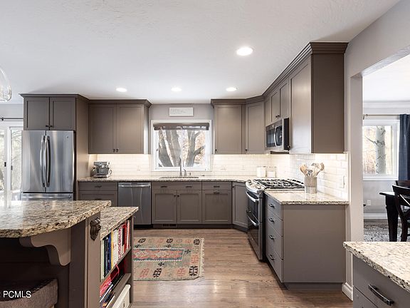 This stylish, light-filled home has been remodeled from top to bottom and inside out. The updated kitchen opens to a family room with a walk-out to the fabulous deck (perfect for entertaining) and the large lawn. Imagine holiday dinners in the beautiful formal dining room with plenty of space for everyone to gather in the great room. Enjoy the mountain views from the lovely home office. Upstairs is the primary bedroom, with its completely remodeled bath. Soak in the stand alone tub or revive in the glass shower. Three additional bedrooms plus a full bath complete the upstairs. Each bedroom faces the mountains and has lovely views. The exterior has been refreshed with recent paint, driveway, and new stone. Inside, the hardwood floors were re-stained, carpets and light fixtures replaced and the kitchen & baths were updated. Finally, a lovely home that is move-in ready for its new owner to enjoy! Located in the Jeremy Ranch neighborhood just 15 minutes to Salt Lake City and 10 minutes to skiing.