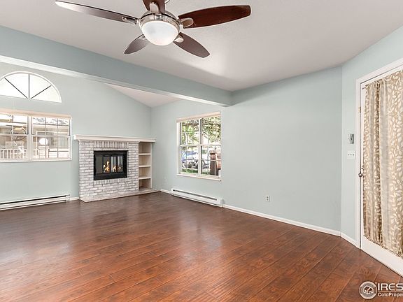 Gorgeous main floor level, end unit, condo in the heart of Fort Collins. Recently updated kitchen & bathrooms, flooring, freshly painted, open floorplan with woodburning fireplace & mantle in a bright living room with a vaulted ceiling. Condo features all kitchen appliances and washer and dryer. Cozy courtyard with mature landscaping and minutes from everything! Only conventional or cash financing.