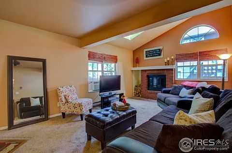 Beautiful first floor end unit condo in midtown Fort Collins! This condo features 2 spacious bedrooms, 1 full bathroom with brand new shower & tub, wood burning fireplace, stained concrete floors in kitchen & bathroom, fresh interior paint, new roof on unit in 2015 & front patio. Kitchen opens to living room with eat in bar. All kitchen appliances, washer & dryer, & window A/C unit included. Great location close to shopping, restaurants, schools, parks & bus line. Schedule your showing today!