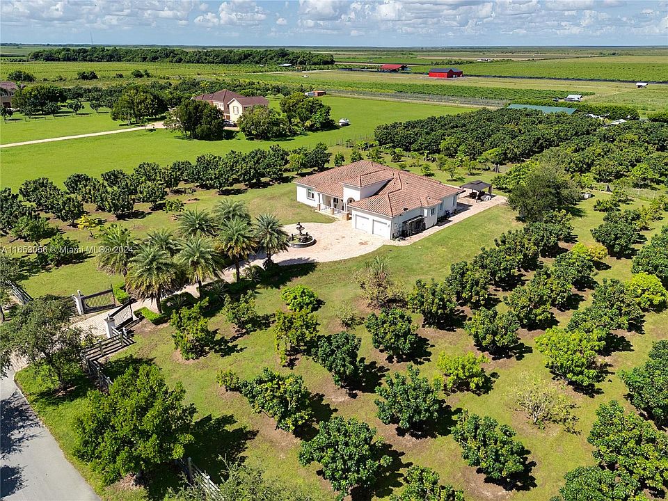 Welcome to your dream estate in the exclusive gated community of Ranchos Del Sol. Set on over 4 acres, this 3,800 sq. ft. home features an open-concept layout with high ceilings, ceramic tile floors, and hurricane impact windows. Enjoy the outdoors with a spacious paver driveway, a poolside kitchen perfect for entertaining, and a huge barn nearly the size of the main home for endless possibilities. Located near Florida City, this tranquil haven offers a unique chance to expand with the adjacent lot, which is also available for purchase.