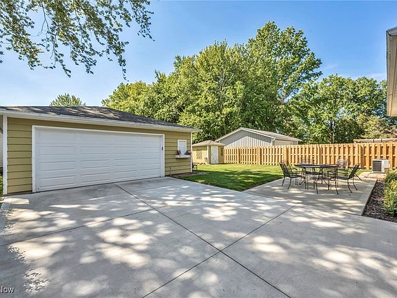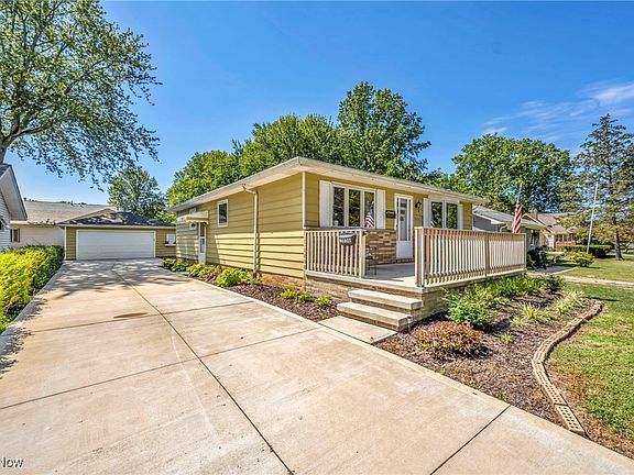 Welcome to the ease of one-floor living just minutes from the lake. This 3-bedroom, 1.5-bath ranch has been thoughtfully cared for and offers a comfortable blend of charm and updates. The spacious living room features a large bay window that fills the home with natural light, while hardwood floors extend through the main living and bedroom areas. The eat-in kitchen provides a welcoming space for everyday dining with newer vinyl plank flooring. The updated full bath adds a fresh touch, and the well-maintained basement provides flexibility with an additional room—ideal for a bedroom, office, or hobby space—plus ample storage. Outside, enjoy a front porch, large concrete patio, and beautifully landscaped yard. A privacy fence, detached garage, and storage shed add convenience, while updates including a new driveway, garage door, front porch, and newer mechanicals provide peace of mind. Move-in ready and full of character, this home is a place you’ll be proud to call your own.