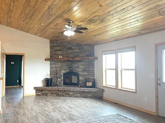 Enjoy 360 degree mountain views from this country property! Located between Alamosa and Monte Vista this property offers privacy with 40 acres and just minutes to Alamosa. The house features hand laid beetle kill pine ceilings throughout and laminated wood floors. The open concept floor plan includes an eat-in kitchen, dining area, large living room and stone wood burning fireplace. A fenced backyard area compliments the property along with a large chicken coop. The prime bedroom features a walk-in closet and en suite bathroom with tiled shower, double vanity and jetted tub. The additional two bedrooms are on the east side of the home next to a full bath with double vanities. The domestic well can be used for up to three dwellings, to water animals or water up to 1 acre of yard. Crawl space offers tons of storage! Tractor is negotiable. Schedule your showing today!