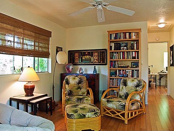 What a great opportunity for the 1st time home buyer or investor. 2 homes on private lot at the end of a cul-de-sac. Walk to Makawao town. Property features fruit trees, including banana, guava, and avacodos as well as gorgeous flowers. The two homes are legal, clean and ready to move in. Ohana is rented long term. The main home is 2 bed/1 bth with upgraded flooring, and in excellent condtion. The ohana is a one bedroom home with a large loft, upgraded tile floors and extra storage. The decks of both legal homes over look the tropical gulch, and lush tropical foliage. In today's tough economy, the legal rental is great for some mortgage relief. TAKE ADVANTAGE TODAY