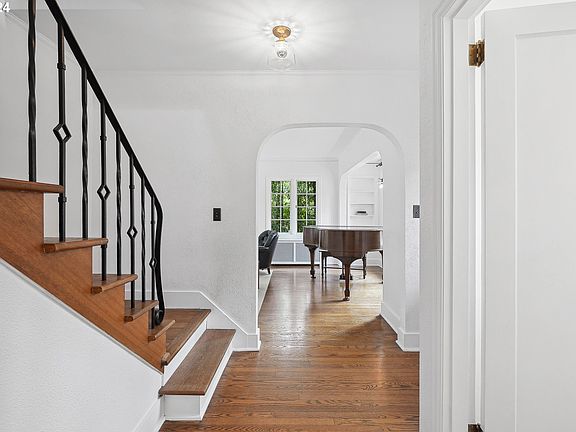 Perched atop Portland's renowned Council Crest Park, this 1930 English Romantic Revival home offers seasonal peek-a-boo views of Mt. Hood and the city. Spanning nearly 2,500 sq. ft., this home merges historic charm with modern luxuries, set against the backdrop of Portland's great outdoors.Upon entering, you'll be welcomed by original Oak and Fir flooring and designer fixtures, enhancing the natural light streaming through dual-aspect windows. The living room features original built-in bookcases, while expansive dining, living, and family rooms open to two private decks and a serene patio, surrounded by lush greenery.This property includes three bedrooms plus an office, with a second-floor bedroom opening onto a private deck. Two updated bathrooms and a fully finished basement provide modern comforts and ample space. Located at an elevation of 967 feet, the home enjoys a cooler climate, complemented by ultra-high-speed fiber optic internet. The chemical-free organic yard attracts local wildlife, adding to the home?s natural charm.Significant updates include a 2019 kitchen remodel with custom quarter-sawn oak cabinets, Carrara marble counters, and high-end appliances like a Wolf stove, Wolf ovens, a Sub-zero refrigerator/freezer, and a Miele dishwasher. Additional features include a microwave space, a small appliances cubby, and dual-layer lighting.With GREAT schools and minutes from downtown Portland, OHSU, Nike World Headquarters, and Intel, this home combines seclusion with accessibility in a historic neighborhood dotted with flowering trees and stately homes. Experience exceptional living daily at this Council Crest sanctuary. Please ask your Agent about the extensive features/updates list! [Home Energy Score = 4. HES Report at https://rpt.greenbuildingregistry.com/hes/OR10225889]