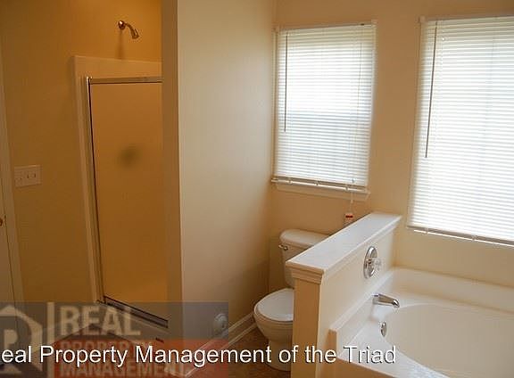 Newer Development, just off Kernersville Rd. - Spacious 4 bedroom home with 2 full bathrooms in newer development just off Kernersville Rd 6 miles to Kernersville, 5 miles to downtown Winston Salem. Recent laminate flooring on the main level and carpet in the upstairs 4th bedroom. Vaulted ceilings in living room and master bedroom. Fireplace & Master bathroom features separate shower, dual vanity, and garden tub. Fresh paint and new counters. Pets OK, Sorry no Section 8. (RLNE4994731)
