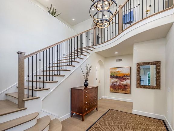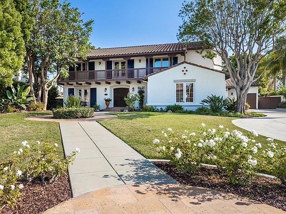 Welcome to luxury living in the prestigious neighborhood of The Ranch in La Costa. Nestled on a quiet cul de sac, this stunning estate on a large lot offers breathtaking views, and a sense of tranquility with canyons as your backdrop. This beautiful Spanish estate has undeniable curb appeal with a sprawling front yard, adorned with an idyllic front porch swing, and a second-story balcony. Featuring one of the most popular floor plans, this impeccably remodeled house exudes warmth and elegance with a grand foyer, a gorgeous brand new staircase with custom railings, and exquisite French oak hardwood flooring throughout. The formal living room is centered around a cozy fireplace, seamlessly flowing into a spacious dining room featuring built-ins and French doors, opening to the backyard retreat. The massive light-filled open concept kitchen, the nook with built-in seat and gorgeous lighting, and the spacious family room, create the perfect space for entertaining. The gourmet kitchen boasts a large center island, new countertops and backsplash, refinished cabinets, a walk-in pantry, a butler’s pantry, and opens to the family room offering comfort and style, centered around another grand fireplace. The first floor hosts a versatile bedroom currently used as an office, and a full bath, offering privacy as a guest suite or in-law suite. Upstairs, the expansive primary suite with canyon views features a luxurious bathroom with a walk-in shower, soaking tub with a view, double vanity, and dual walk-in closets. Three additional bedrooms are spaced nicely throughout the second floor, along with a stunning remodeled jack and jill bath, and a remodeled en-suite bath. The versatile bonus room with a deck overlooking the backyard has endless possibilities, from a media room, a movie theater, game room, play room, library, or even a large 6th bedroom. Outside, the sprawling backyard beckons with endless possibilities, featuring a built-in barbecue island and ample seating areas, with space for a resort-style pool. This backyard is a blank canvas for your dream outdoor oasis. The property includes a 4-car garage, interior laundry room, AC, and is close to top elementary, middle, and high schools. Don't miss the chance to own this exceptional property in one of the most coveted neighborhoods. With its spacious floor plan, private backyard, and cul de sac location, this is a spectacular opportunity for even the most discerning of buyers.