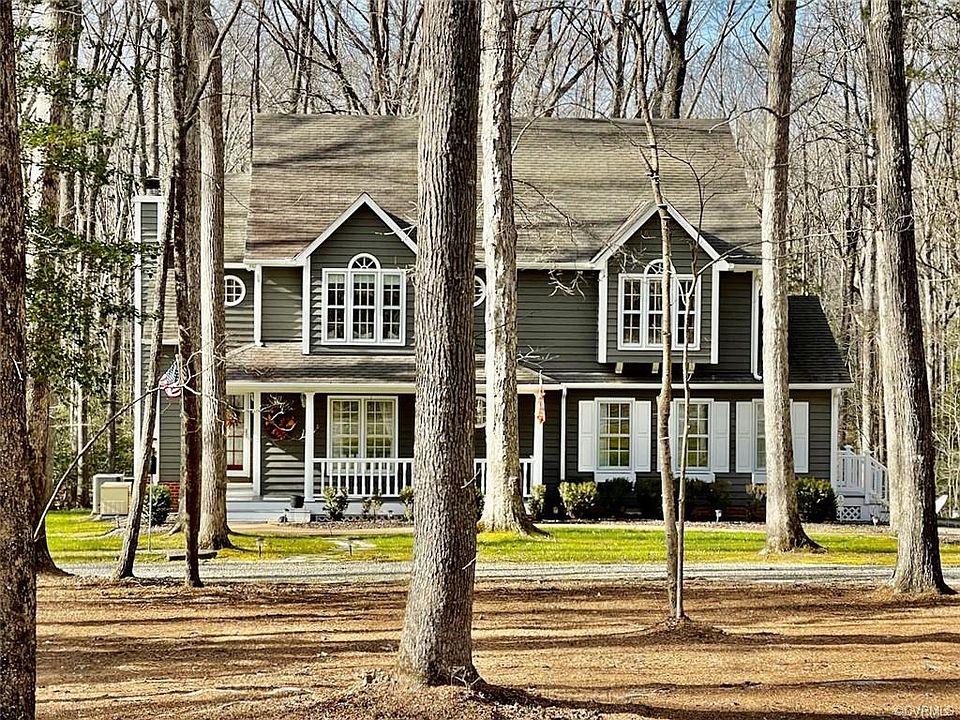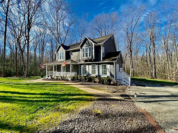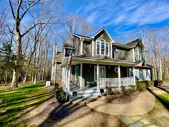 Beautiful Victorian home nestled on 14+/-private acres in Maidens VA, close to Rt 711. Features a much desired open floor plan with vaulted ceilings in the family room, kitchen, primary bedroom, and 3rd bedroom. Wood floors in the foyer, family room, formal dining room, & kitchen. Elegant wrap-around front porch with swing, screened porch and large deck overlooking private park-like sitting. Elegant columns to dining room, propane gas log fireplace & transom window in family room. Kitchen features an island with breakfast bar, corian counter-tops, ceramic tile backsplash, & breakfast area. House also features 2 zone heat pumps, (4+/- years old) with transferable warranties, propane gas Rinnai tankless water heater, and an attached garage. X-Finity Comcast high speed internet. Exterior was professionally painted 3+/- years ago. Won't last.