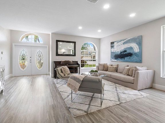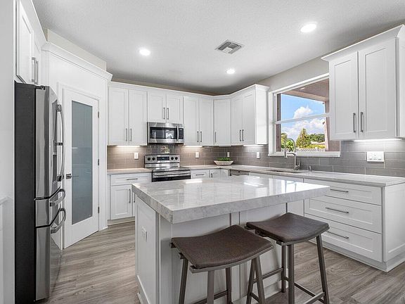 Welcome to this large, light and bright Grand Isles pool home that sits on a beautiful lake front lot and offers 6 bedrooms and 3 full baths with upgrades throughout. The main level has newer neutral LVP flooring , gorgeous updated kitchen with marble counters, large pantry, center prep island , newer stainless steel appliances and lots of soft closing drawers and pullouts for convenience. The large under mount sink has a window that overlooks the pool area and lake . Off the Family Room is a bedroom with bamboo wood flooring making it ideal for guests , a play room or an office as it is an ensuite to a full bathroom . Sliding doors lead to a massive travertine patio that surrounds a large newly resurfaced saltwater pool with a conversation area. Outdoor surround sound and lots of ambient lighting makes the perfect place for large family gatherings and entertaining. Upstairs you will find bamboo wood flooring with 5 bedrooms and 2 baths.