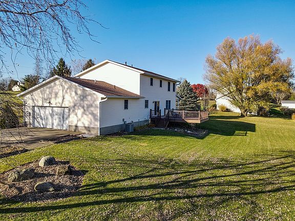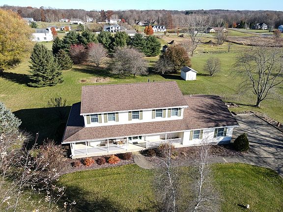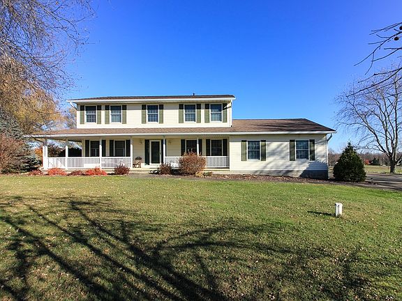 Lexington country charmer! Situated on a generous 1.8 acre lot adorned with a relaxing wraparound porch designed to take in the gorgeous country views! Custom built in ‘95 with many updates since. Tons of perennials adorn the exterior landscape. Interior is trimmed in oak, with crown molding throughout the first floor. The rooms have a spacious, open feel. Applianced kitchen with main level laundry room. Bosch dishwasher new in 2022. All appliances stay including washer and dryer, freezer in the basement and Kinetico water softener. Enjoy the view out back overlooking the apple trees, from the TimberTech composite deck, replaced in '21! Roof was replaced in 2013. AC unit 2019. baths were remodeled in 2016. BDry basement in 2019 with transferable warranty for $100. Water heater 2017 is propane. Propane tank is buried and owned.
