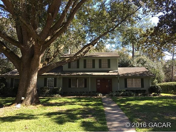 **Under Contract - Backup offers accepted** Fantastic bones on this concrete block 2 story Gainesville Country Club home w/large fenced lot. Original owner selling this home! Beautiful wood floors on stairs & upstairs bedrooms. Master downstairs w/his & her closets. Formal living room off foyer leads to formal dining room. Family room with fireplace off kitchen. Large laundry area. 3 Bed/2 bath upstairs. Gorgeous trees in front & back yard. Join the Country Club for tennis, golf, swimmming, playground, social events and restaurants. One mile from 1-75 and very short commute to Shands/UF.