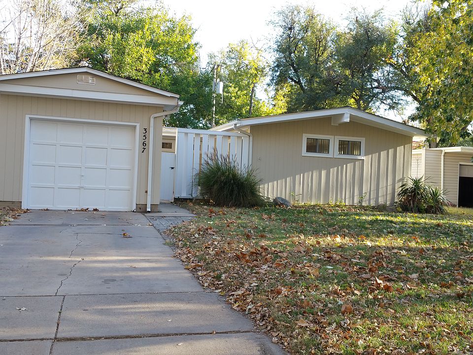 Great 3 bedrooms home located in West Wichita. This home would be a great started home or investment property. As you approach a private fence in yard for privacy into the house you will enter the hall into the recently painted interior of the house. The living room with high ceiling and a gorgeous hardwood laminate floor and a large picture window in front of the house giving the house a lot of light. Spacious kitchen/dining adjacent to the living room. All appliance will remind with the property including washer and dryer. All 3 bedrooms are spacious with a lot of light. There is 1.50 bath. One detached Car Garage. The large fenced yard with sprinkler system and one storage building. Seller will consider all reasonable offers.