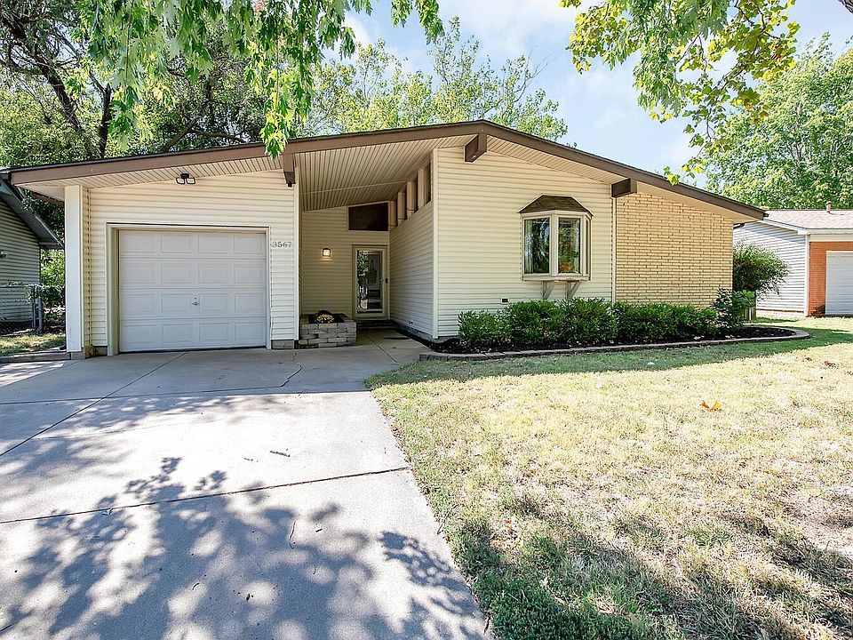 Step into this delightful mid-century modern home, where timeless design meets modern comforts. Featuring 3 bedrooms, including a master with an en-suite bath, this small yet spacious home offers the perfect blend of character and functionality. The living room and two bedrooms boast beautiful, vaulted ceilings, creating an open, airy atmosphere. Beautiful restored hardwood floors run throughout the home, adding warmth and elegance to every step. The kitchen flows effortlessly into the dining area, perfect for everyday living and entertaining. Outside, enjoy the beauty of two distinct patio spaces—a covered patio ideal for outdoor dining and a second open patio for soaking in the sun. The large backyard is a peaceful retreat, complete with mature trees offering shade and serenity. Whether you're hosting guests or enjoying quiet evenings at home, this mid-century modern gem provides the perfect setting for your lifestyle. Seller is related to listing agent.