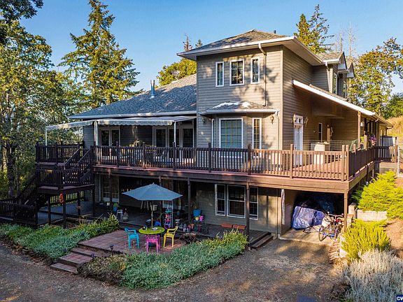 Exquisite home nestled in the woods. Meander up a long private drive to this stately 4252 sq ft home custom built in 1998. Solid construction with lots of solid oak accents. Wrap around deck takes in all nature has to offer. Perfect for dual living. Primary suite has gas fireplace, walk in closet & luxurious bathroom. Loft area upstairs has built in bookcases and window seats. In the walkout basement area you'll find 2 more spacious bedrooms, large family room, storage and full kitchen. Stunning find!