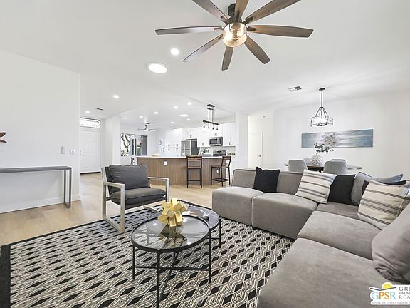 It's the most wonderful time of year in the desert...sunny days, crisp evenings, and endless blue skies set the tone for a peaceful and relaxing lifestyle. Positioned along the golf course, this beautifully REMODELED SINGLE STORY HOME blends modern comfort, style, and seamless indoor-outdoor living. Inside, high ceilings and an open floor plan create a bright, inviting atmosphere. In the kitchen, a skylight bathes the space in natural light, drawing attention to the quartz countertops, waterfall island, generous cabinetry, and cozy breakfast nook. The great room transitions effortlessly for dining and entertaining, with wide sliders framing PANORAMIC FAIRWAY AND MOUNTAIN VISTAS. Three bedrooms and two updated baths in the main home provide comfort and privacy. Set apart on its own side of the home, the spacious primary suite offers stunning mountain views, an ensuite bath, and generous closet space, while the guest rooms are located in their own wing ideal for family and friends. A detached ONE BED/ONE BATH CASITA adds wonderful versatility when hosting your loved ones and grandkids or using it as a private office retreat...the possibilities are endless. A laundry room with ample storage and a two car garage enhances daily convenience. Outdoor living shines with a heated spool, BBQ, and expansive patio...perfect for peaceful mornings, sun-soaked afternoons, and evenings beneath star-filled skies. Residents of Sun City Palm Desert enjoy world-class amenities, including two championship golf courses, three clubhouses, dining venues, fitness centers, pools, tennis and pickleball courts, dog parks, and scenic walking trails. Nearby shopping, dining, and everyday conveniences further enhance the lifestyle. Thoughtfully updated and warmly inviting, this home offers effortless desert living...whether full-time or seasonal...with plenty of room to make lasting memories with those who matter most. It's time to call this home.