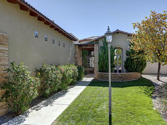 Exquisite Custom build with a Tuscan flair! This home spares no expense. Hard Wood, Windows, Plantation Shutters, Remote Controlled Shades, Radiant Heat Zoned Flooring, Salt Water Pool/Spa, outdoor sound systems, custom lighting & more. Enter through a private courtyard with it's open planter & water feature. Beautifully appointed home office with built in bookcases faces the courtyard. Glass & wrought iron entry doors lead you into an impressive foyer where each wing of the home has its own private hallway. Living areas have beautifully textured walls w coffered ceilings & massive windows looking out onto the backyard pool, spa & open space. Outdoor kitchen with fireplace (w/ mounted television), gas grill, smoker and pizza oven. Gourmet kitchen w SS appliances, Halbert cabinets, breakfast bar, walk-in pantry,Island w/ vegetable sink & disposal. Master BR en-suite has textured walls & ceilings, maple cabinet built-ins, romantic fireplace, and private patio. Enjoy the spa retreat bath w jet tub, large walk-in shower & HUGE walk-in Closet! Bonus Music Room with stained glass window has separate climate control to protect instruments. Solar system installed in 2018.